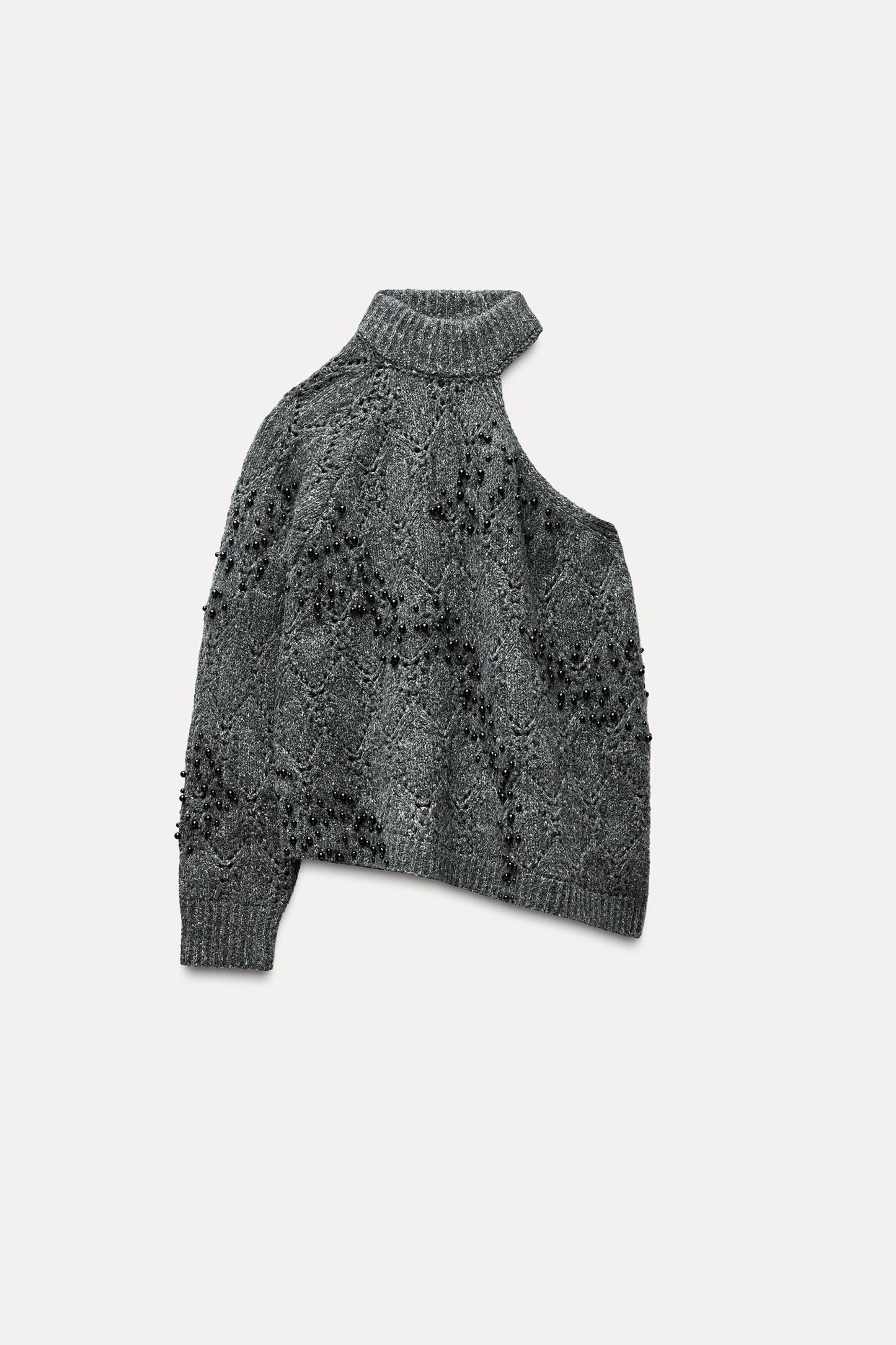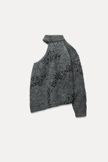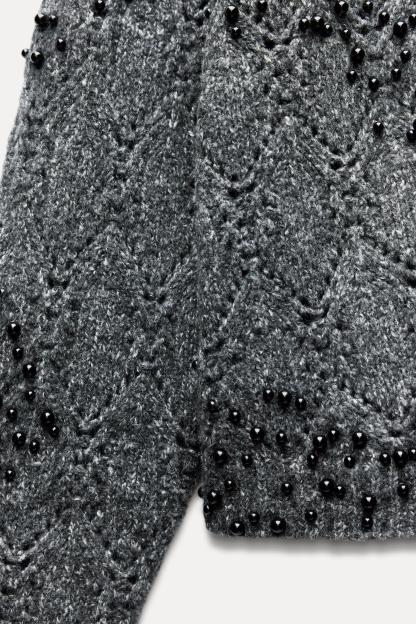 BEADED CUT OUT KNIT SWEATER