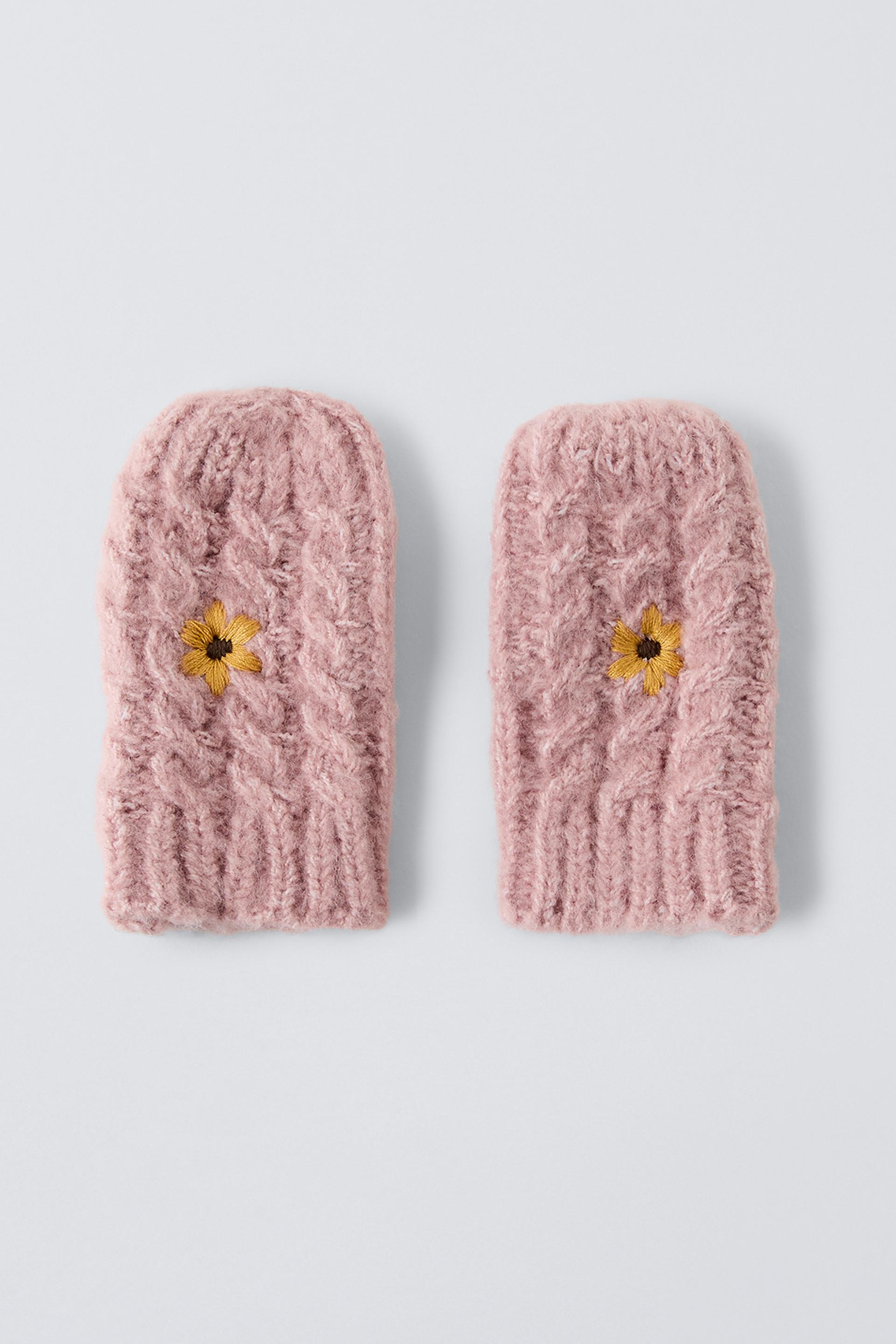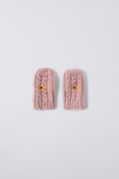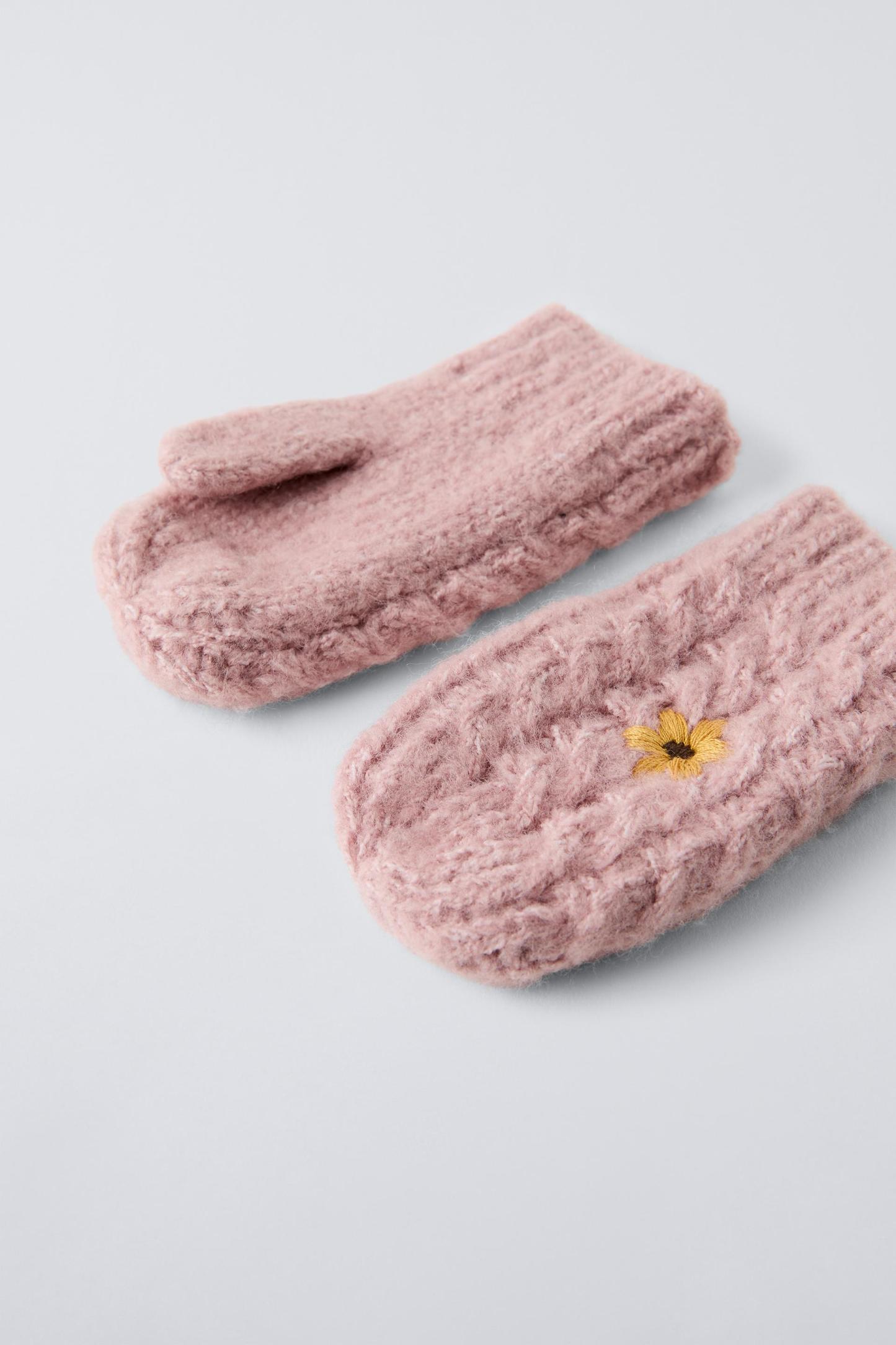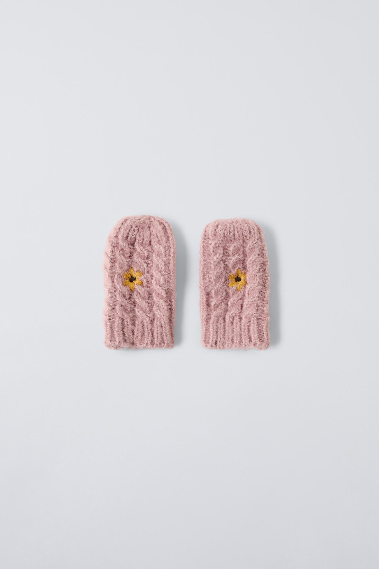 EMBROIDERED FLOWER KNIT MITTENS