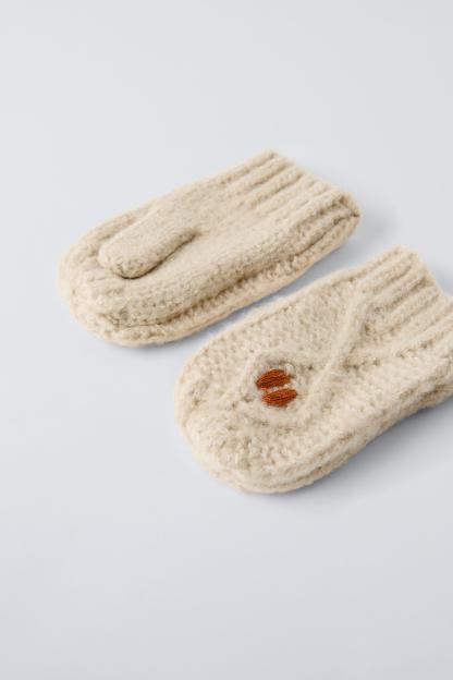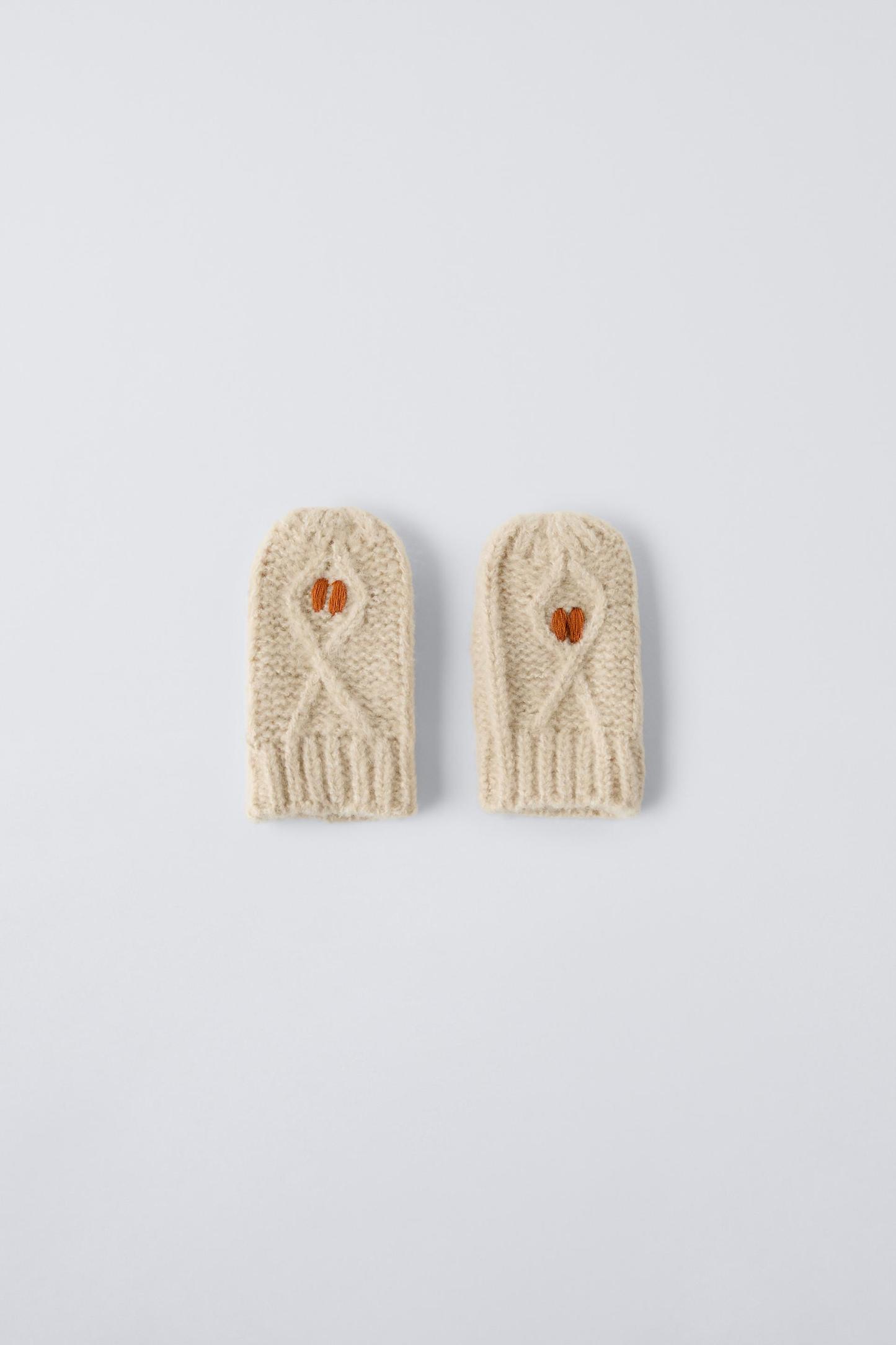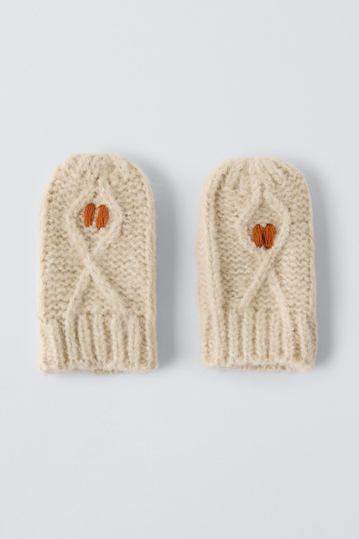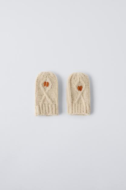 EMBROIDERED FLOWER KNIT MITTENS