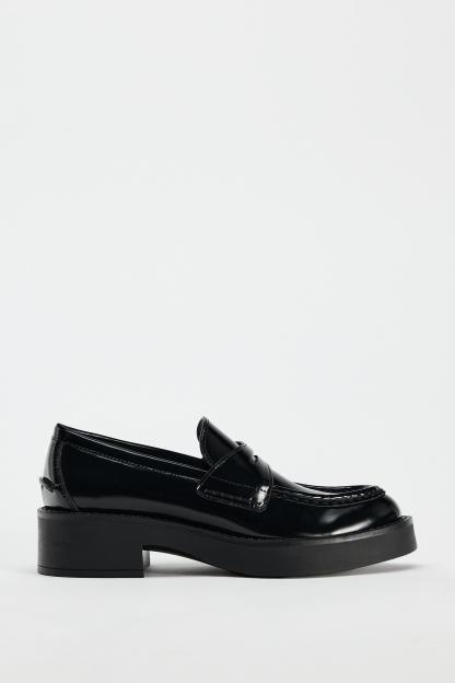 FAUX PATENT LEATHER SADDLE LOAFER