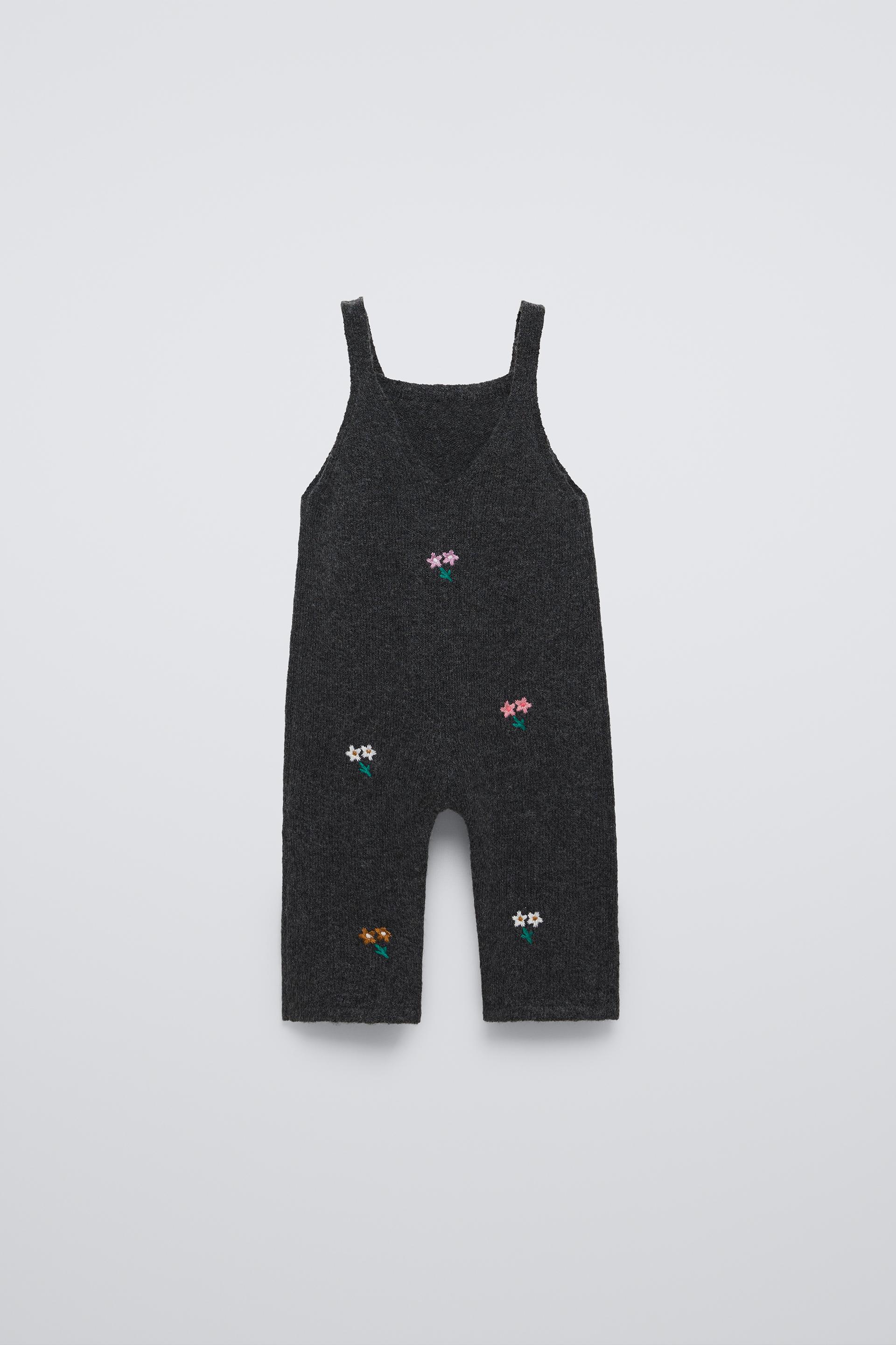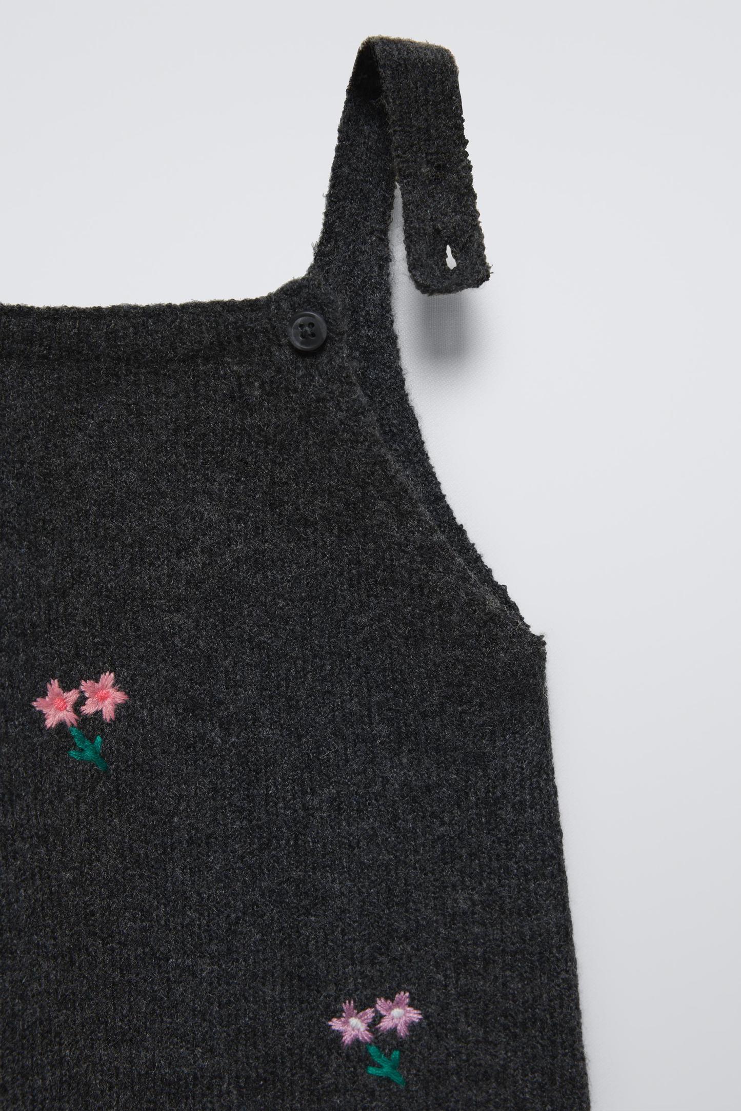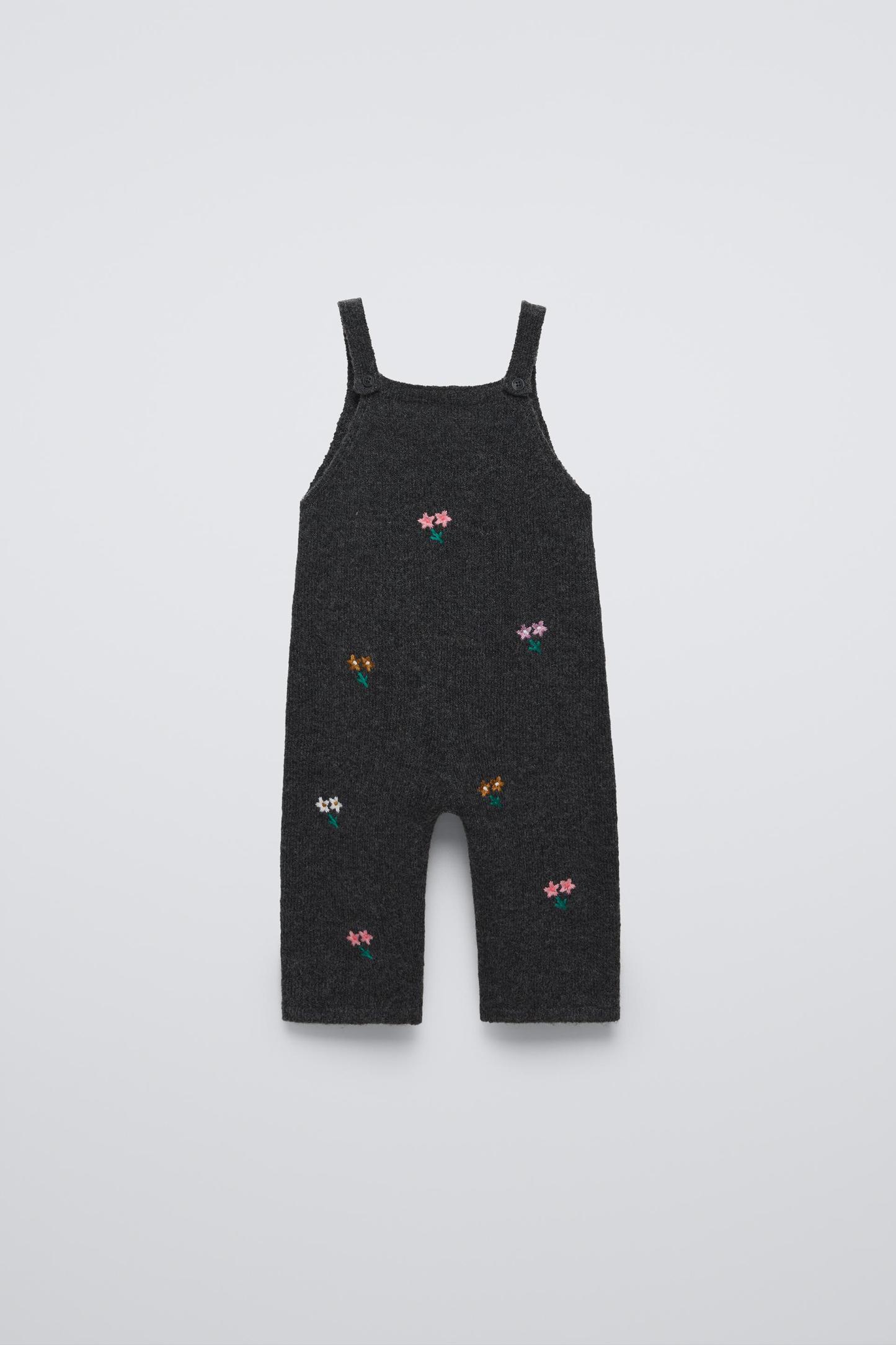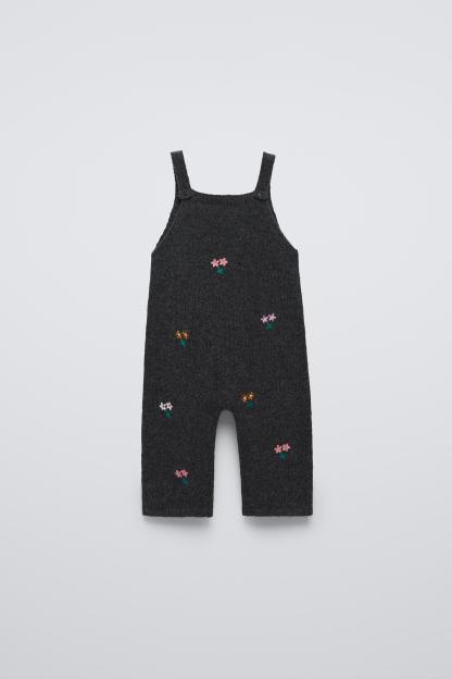FLORAL EMBROIDERED KNIT OVERALLS