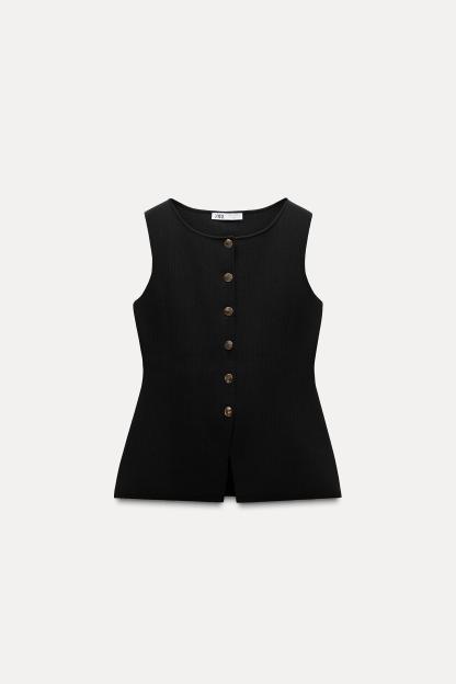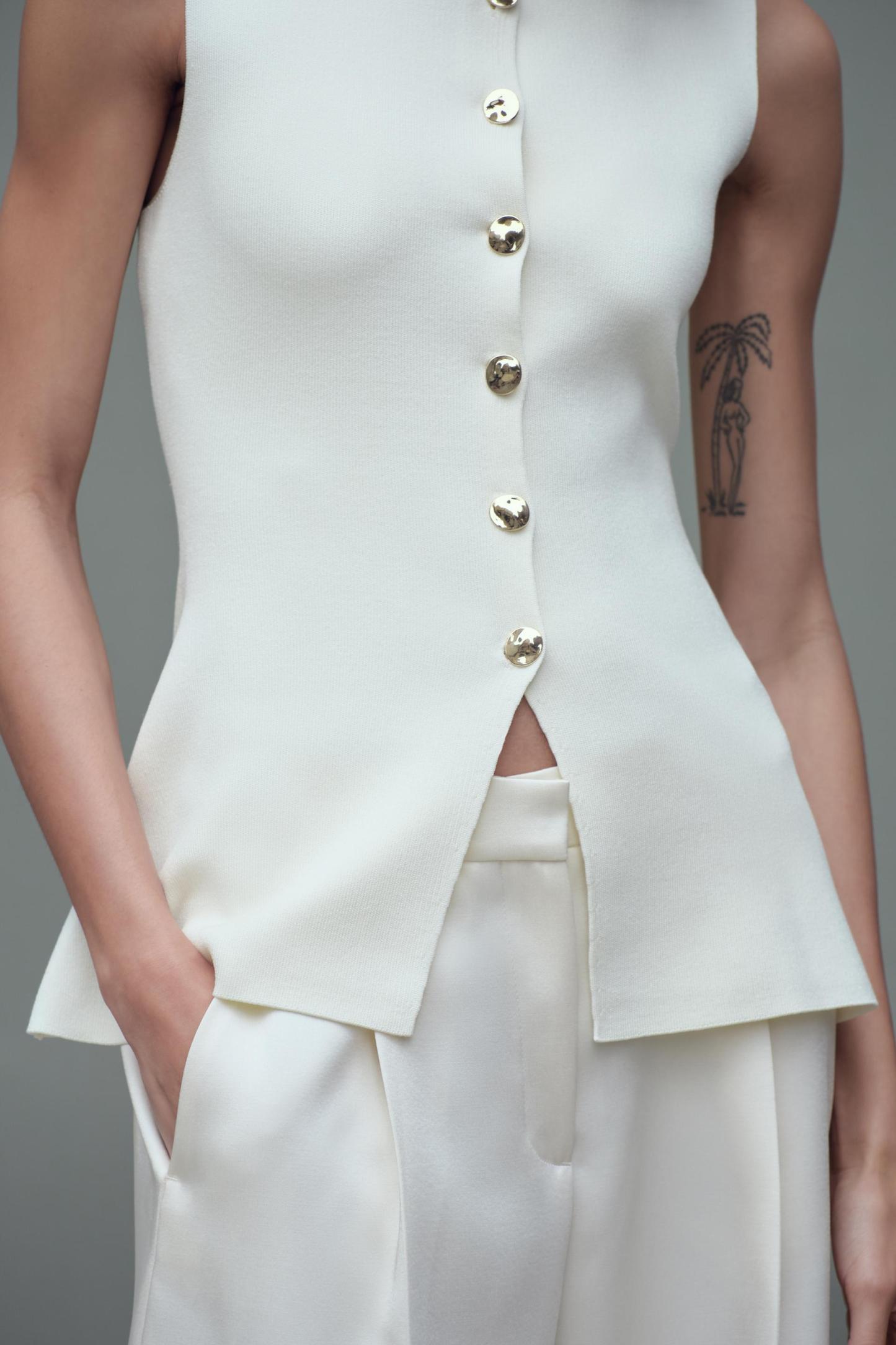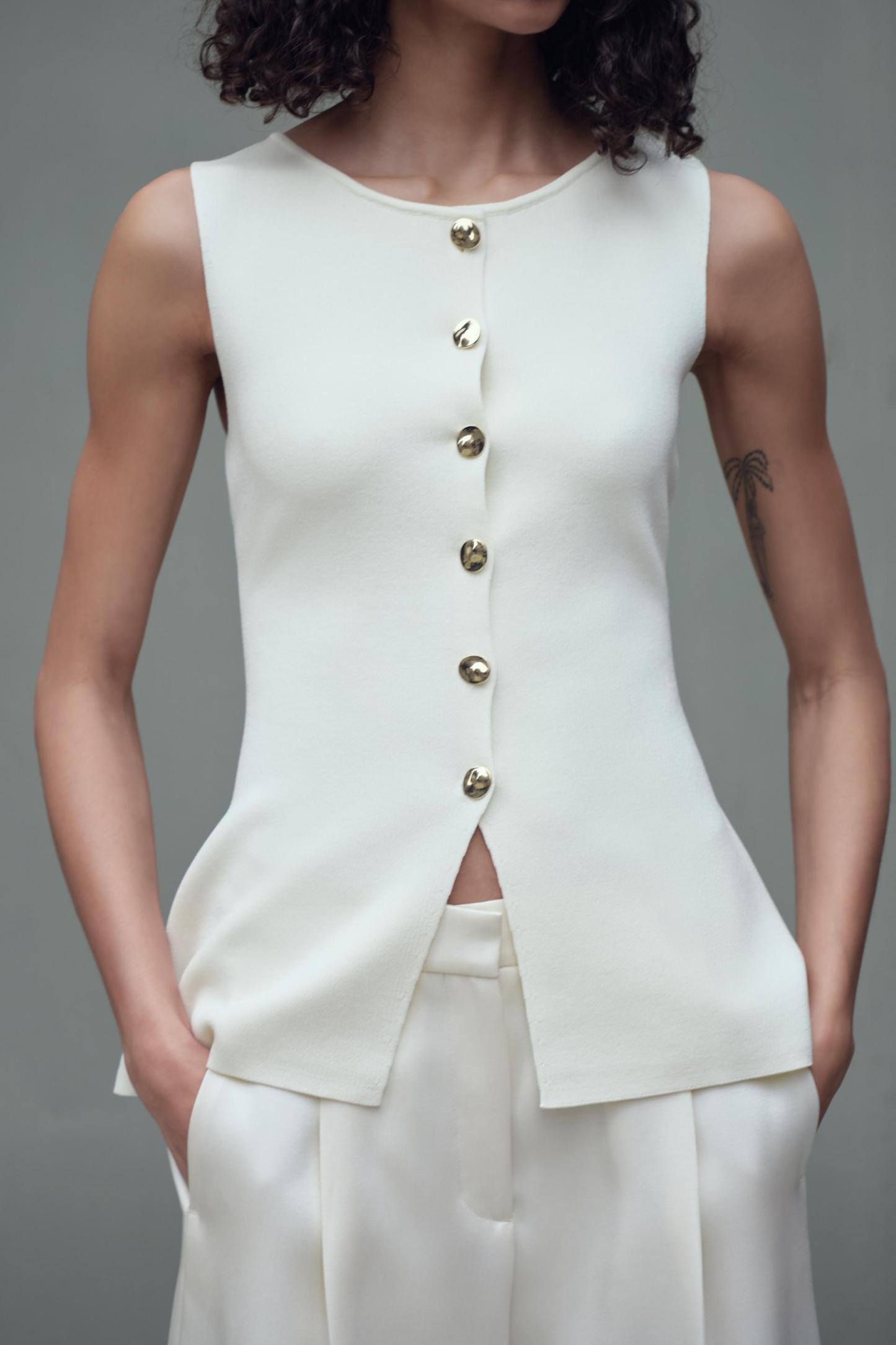 GOLD BUTTON KNITTED VEST TOP