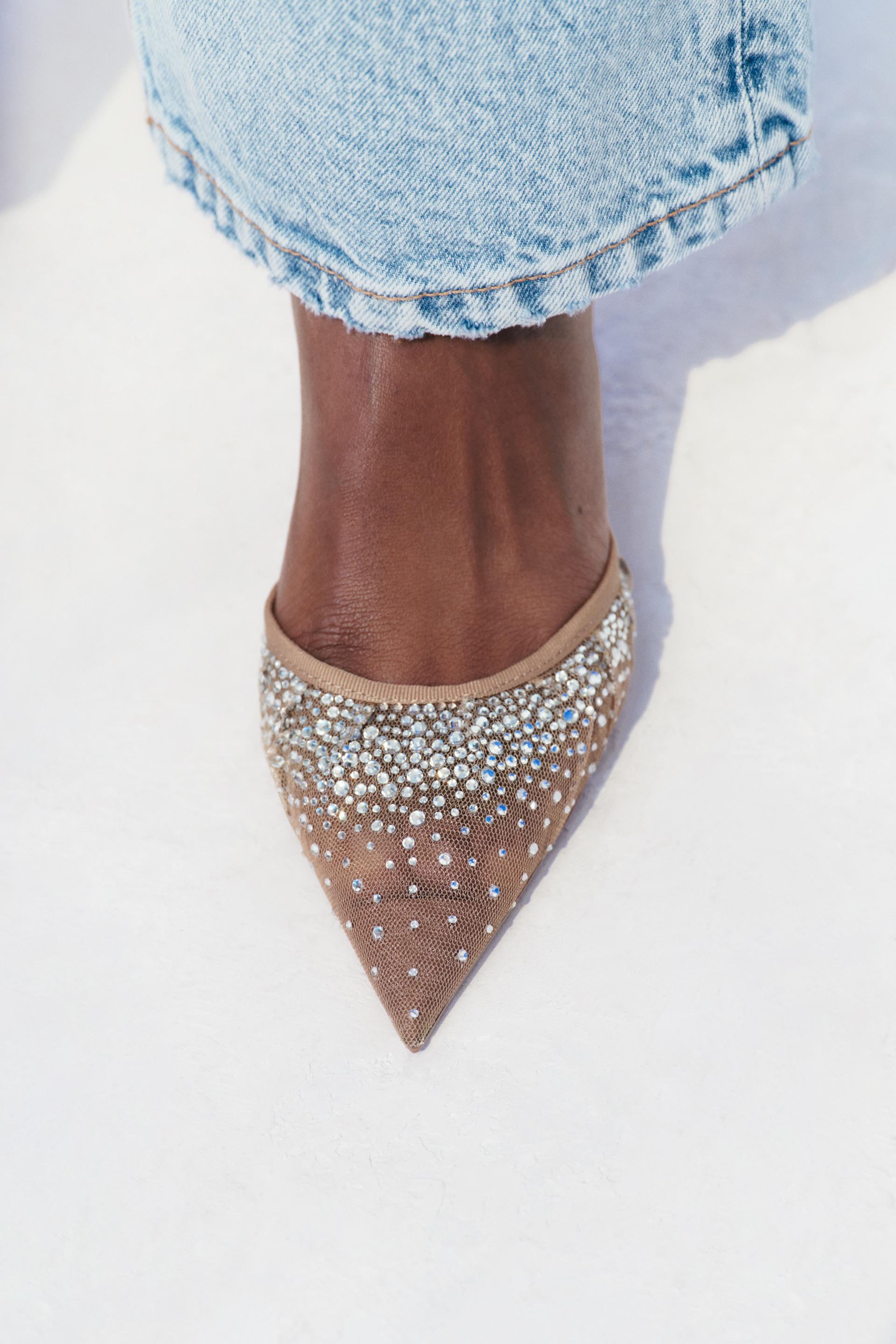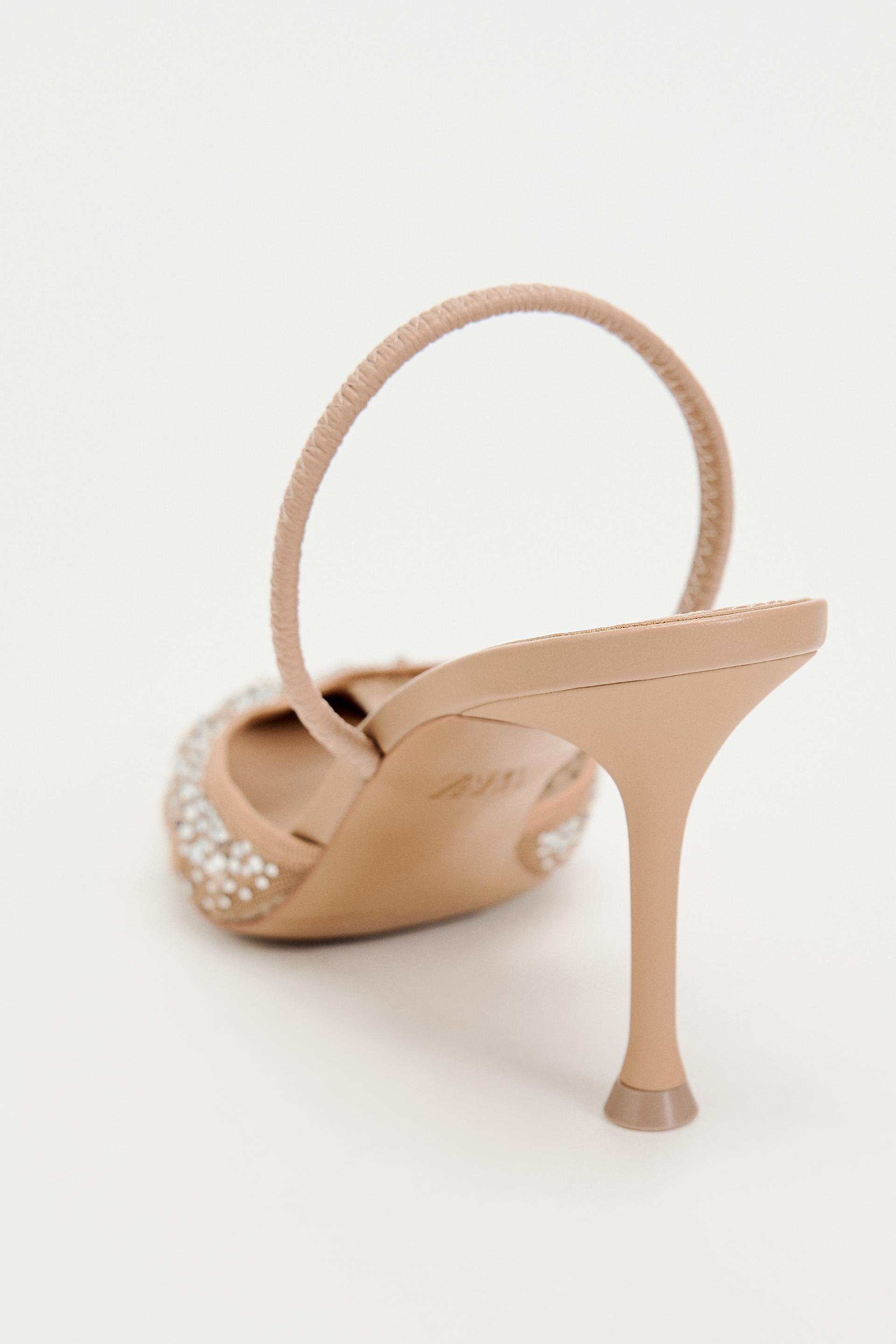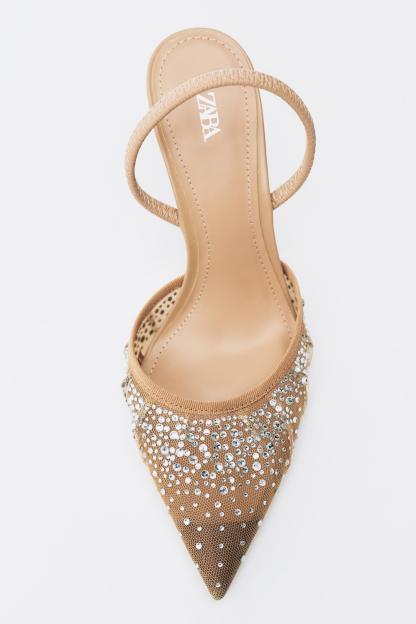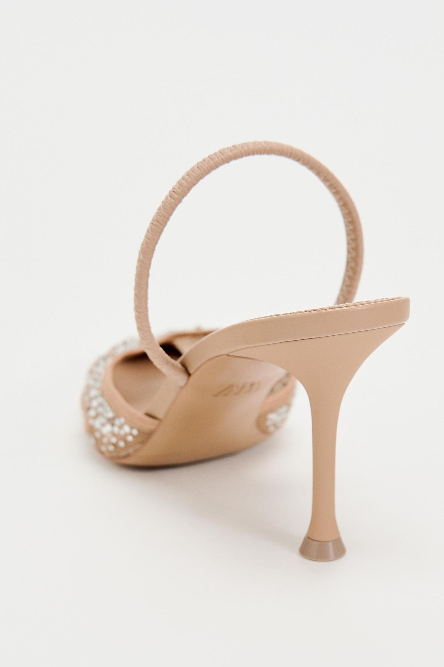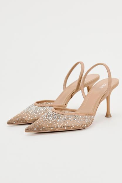 HEELED SHINY MESH SLINGBACKS
