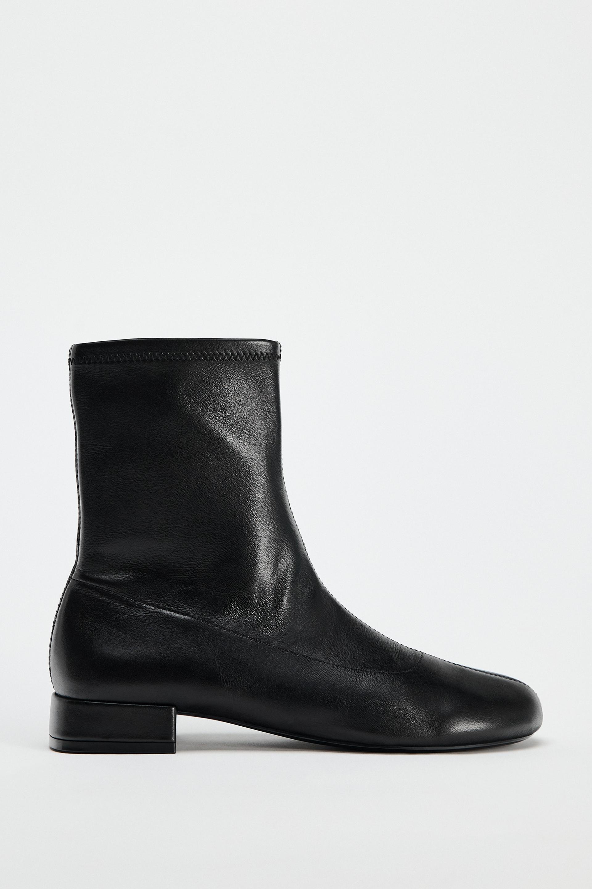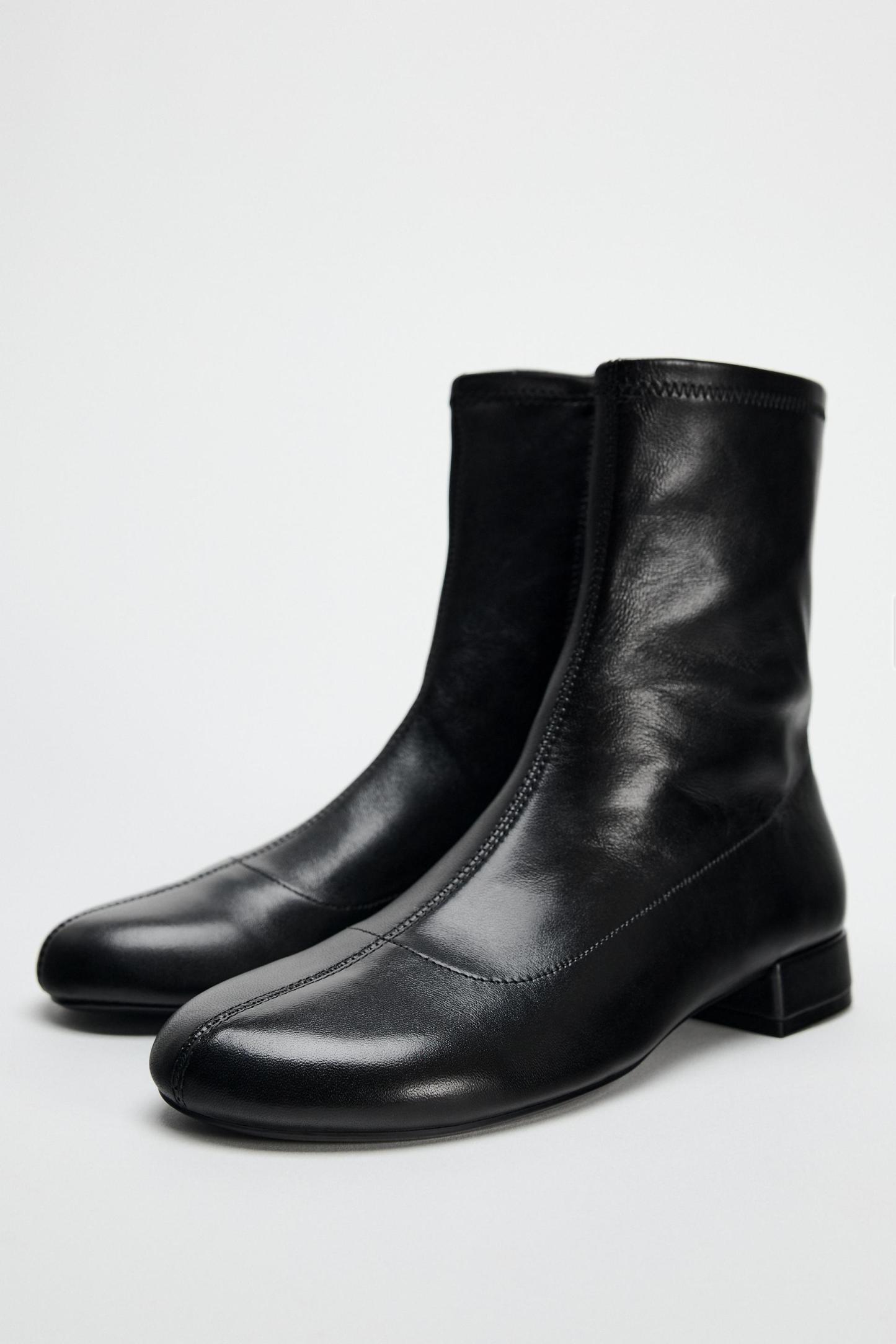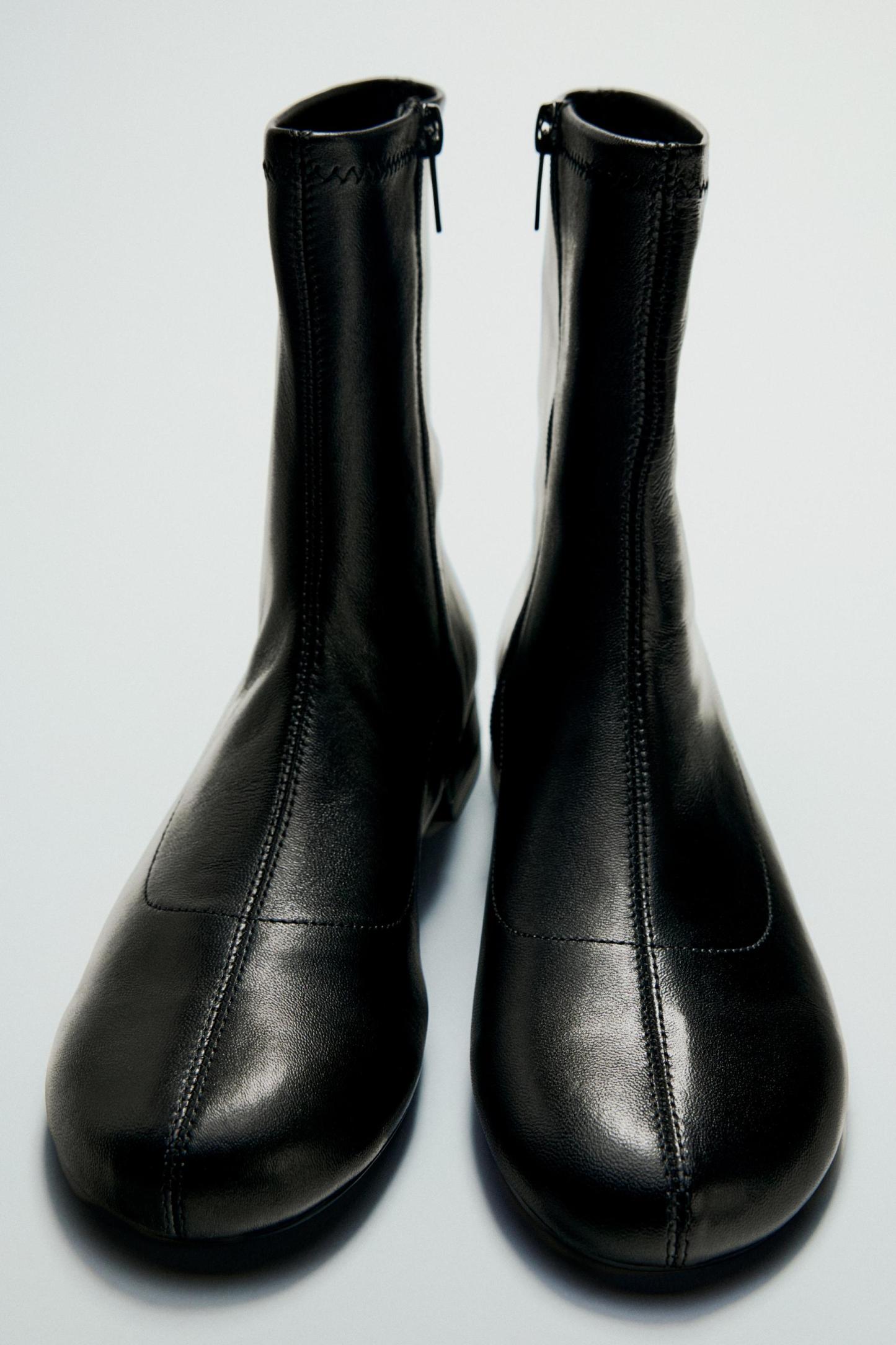 LEATHER FLAT ANKLE BOOTS