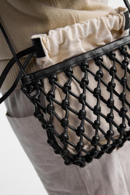 LEATHER MACRAMÉ CROSSBODY BAG