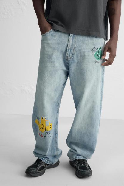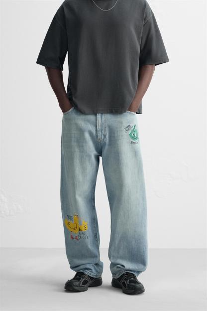 PRINTED BAGGY FIT JEANS