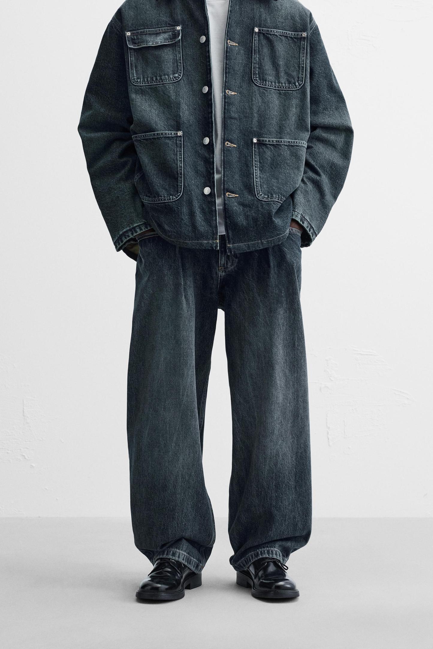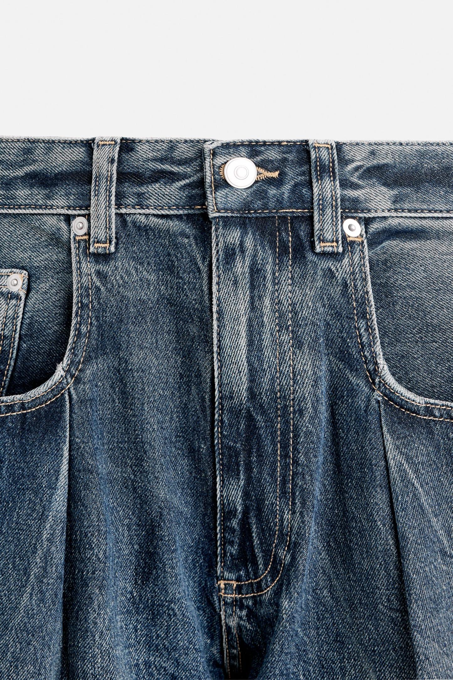 RELAXED FIT PLEATED JEANS