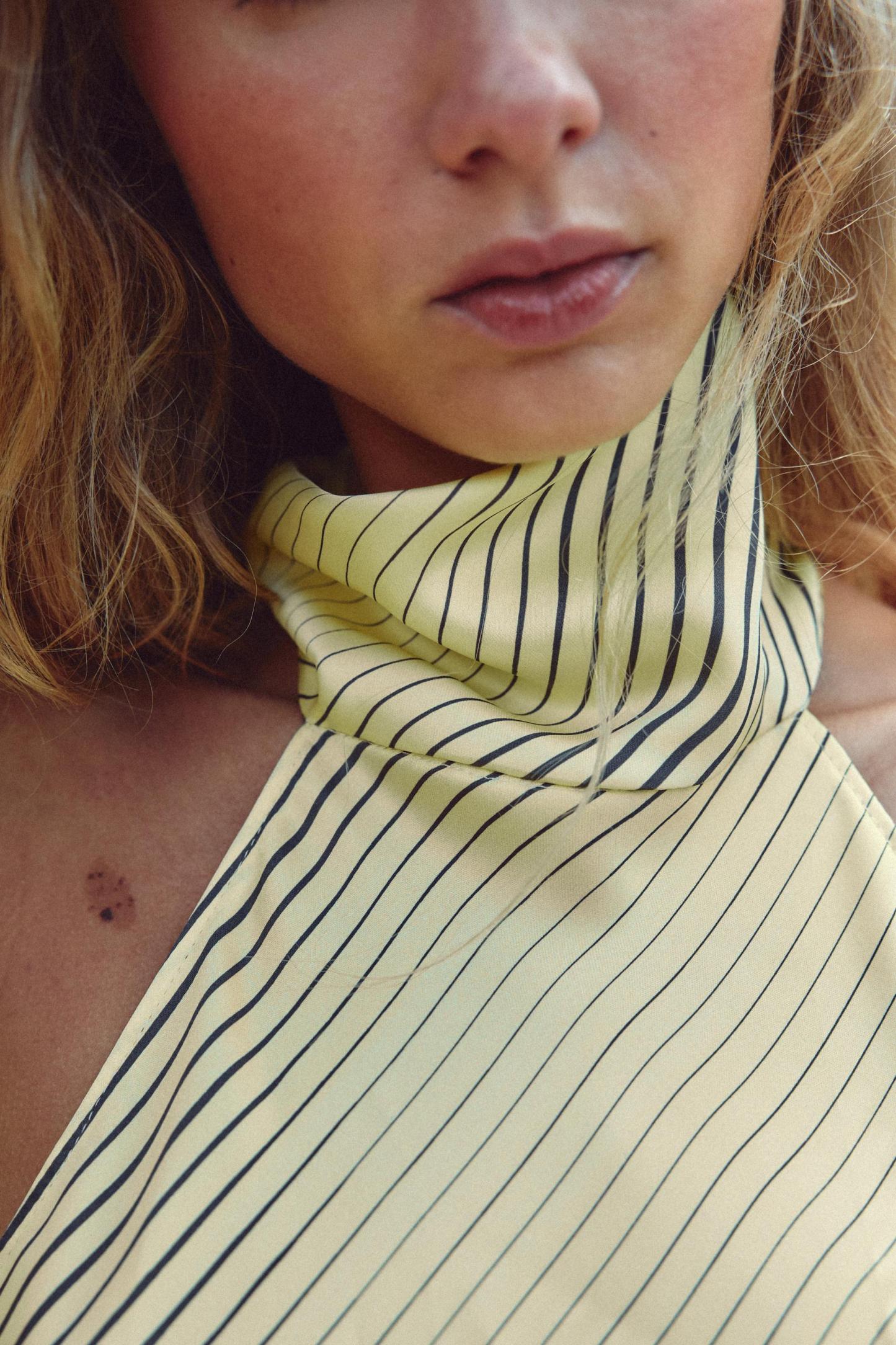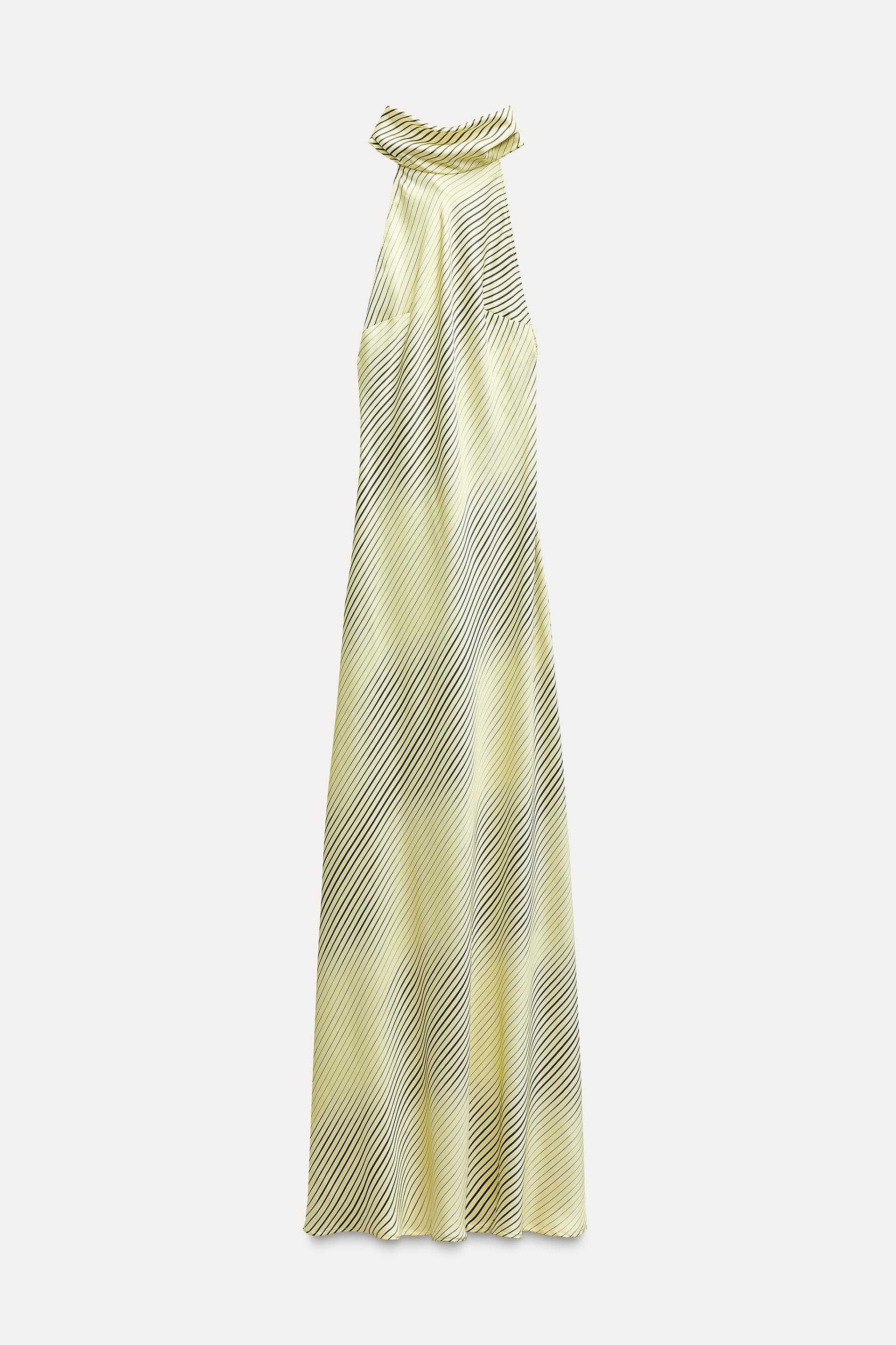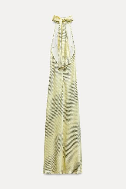 SATIN EFFECT HALTER NECK LONG DRESS