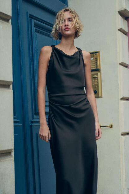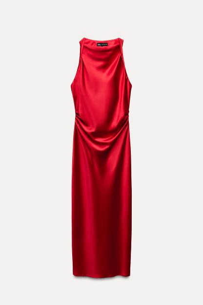 SATIN EFFECT MIDI DRESS