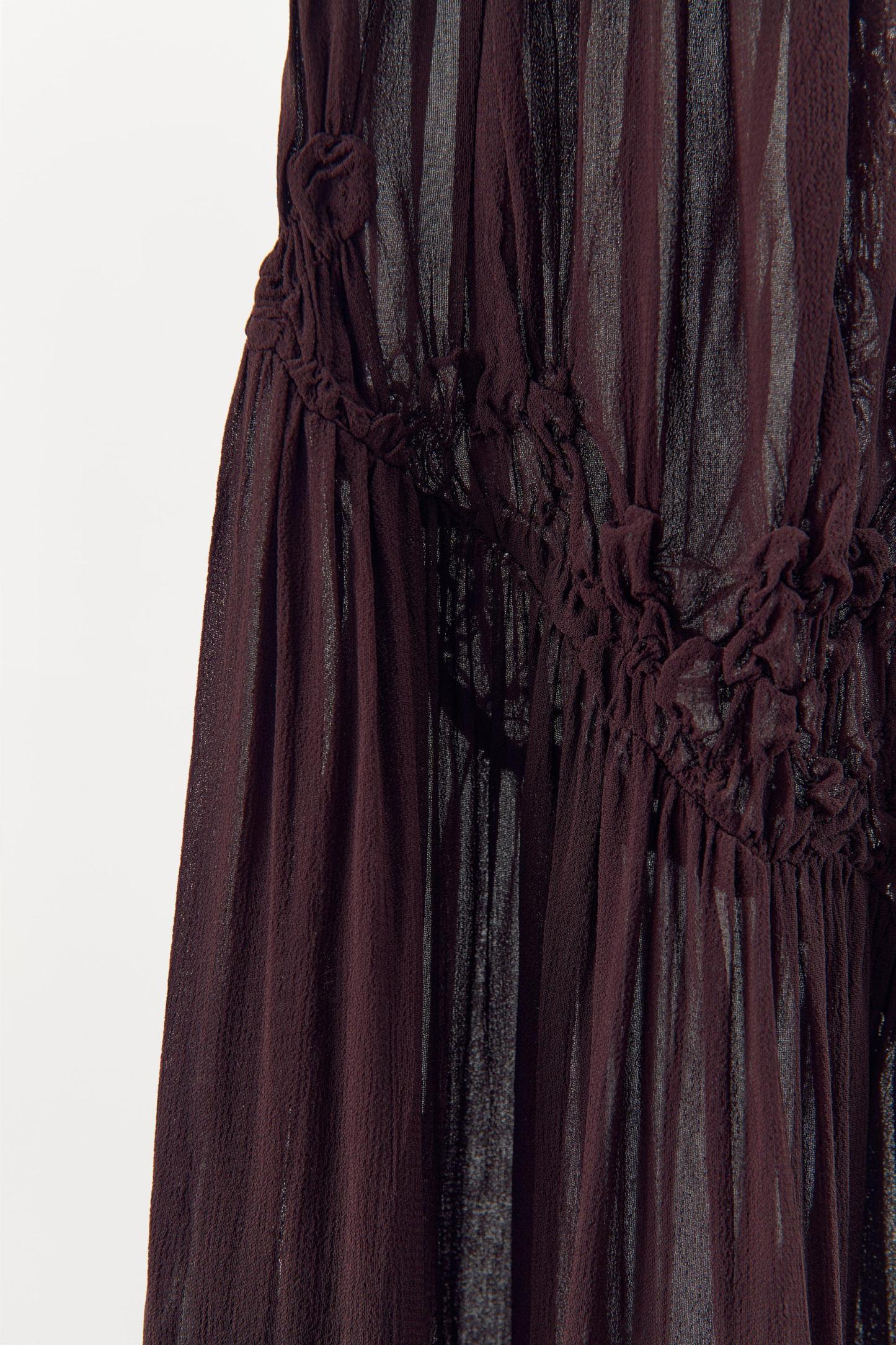 COMPOSITION & CARECOMPOSITIONWe work with monitoring programs to guarantee compliance with the social, environmental, and health and safety standards of our products. To assess its compliance, we have developed an audit program and plans for continual improvement.OUTER SHELLBODY100% viscoseEMBELLISHMENT100% cottonCARECaring for your clothes is caring for the environment.Wash your garments only when needed, as sometimes freshening them up is sufficient. Wash cycles slowly wear down fabrics. By reducing the amount of washing, we lengthen the life our garments and reduce water and energy consumption in their care.